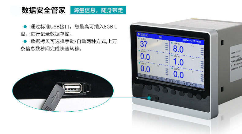 適用場(chǎng)合:米科MIK-R200T 無紙記錄儀1~6通道,集數(shù)據(jù)的測(cè)量、顯示、處理、運(yùn)算、報(bào)警、記錄報(bào)表等多種功能于一身??刹杉绷麟妷骸㈦娏鳌犭娕?、熱電阻等常規(guī)數(shù)值的的采集與記錄。